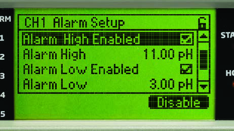 - Configurable high and low alarms