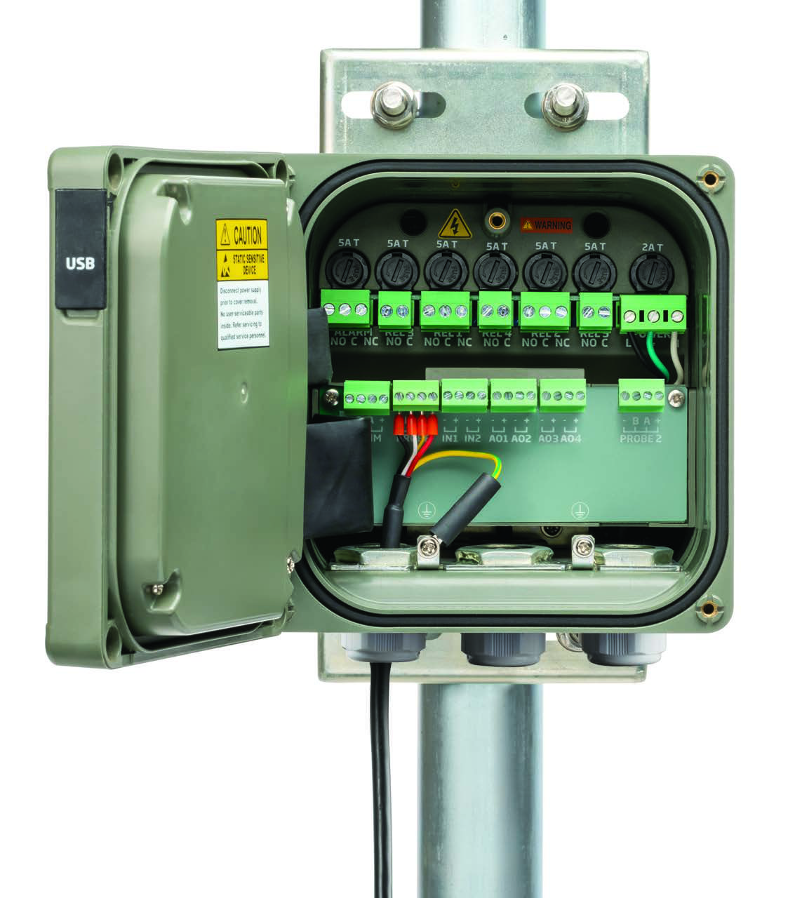 - Up to 4 analog outputs and 5 relays used for control and for sending a signal to data loggers, PLC, SCADA and other remote monitoring systems