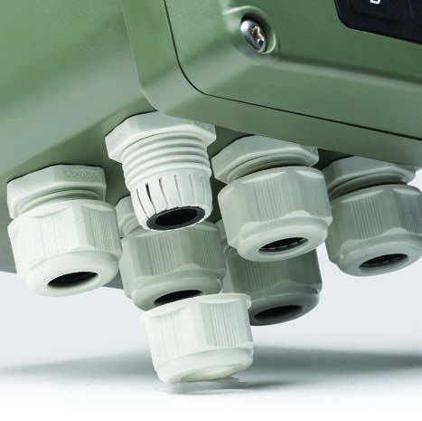 To maintain the IP65 enclosure rating during use, the conduit openings and connection cables are sealed against the environment using the provided cable glands, seals and plugs.