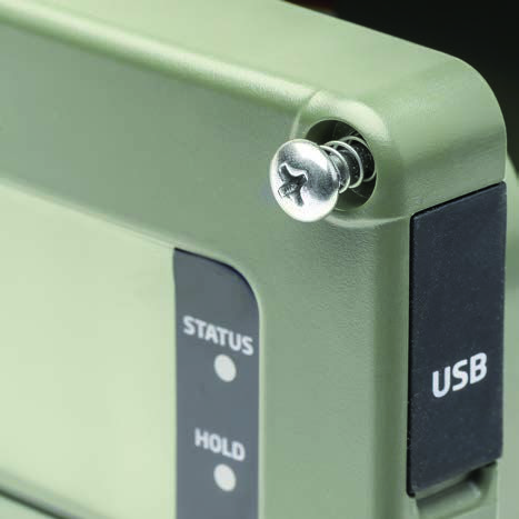 Logged data can be transferred to a flash drive as a .csv file using the USB Type-C port. A rubberized plug helps protect the port against the ingress of water.